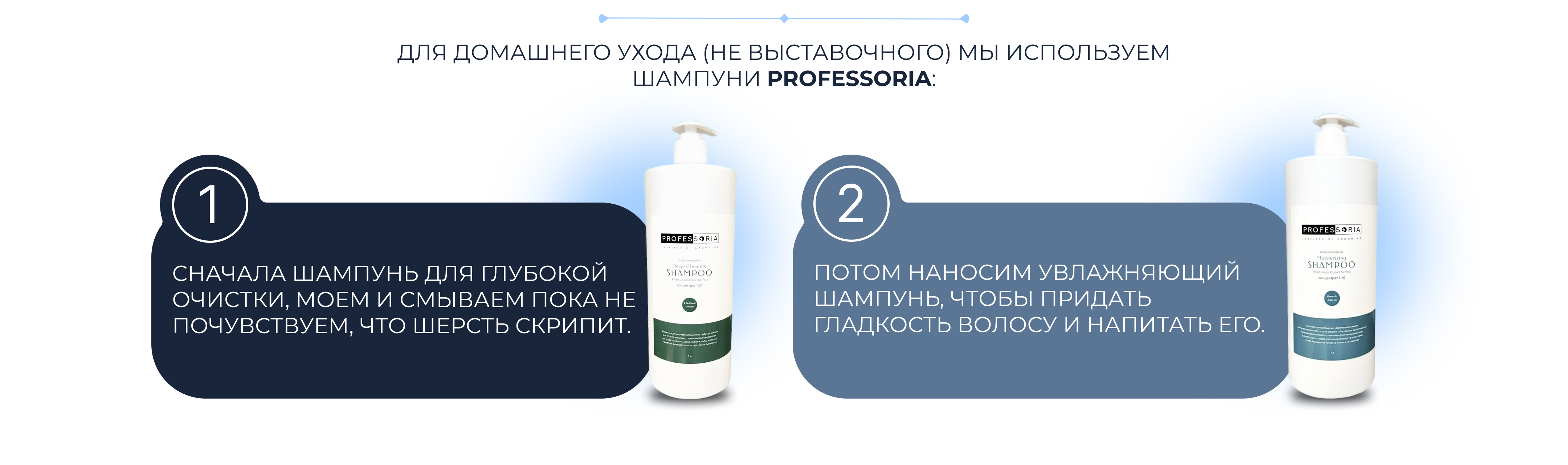 Сначала Шампунь для глубокой очистки, моем и смываем пока не почувствуем, что шерсть скрипит. https://groomeru.ru/shampun-professoria-deep-cleaning-1-20-glubokoy-ochistki-1-l/
