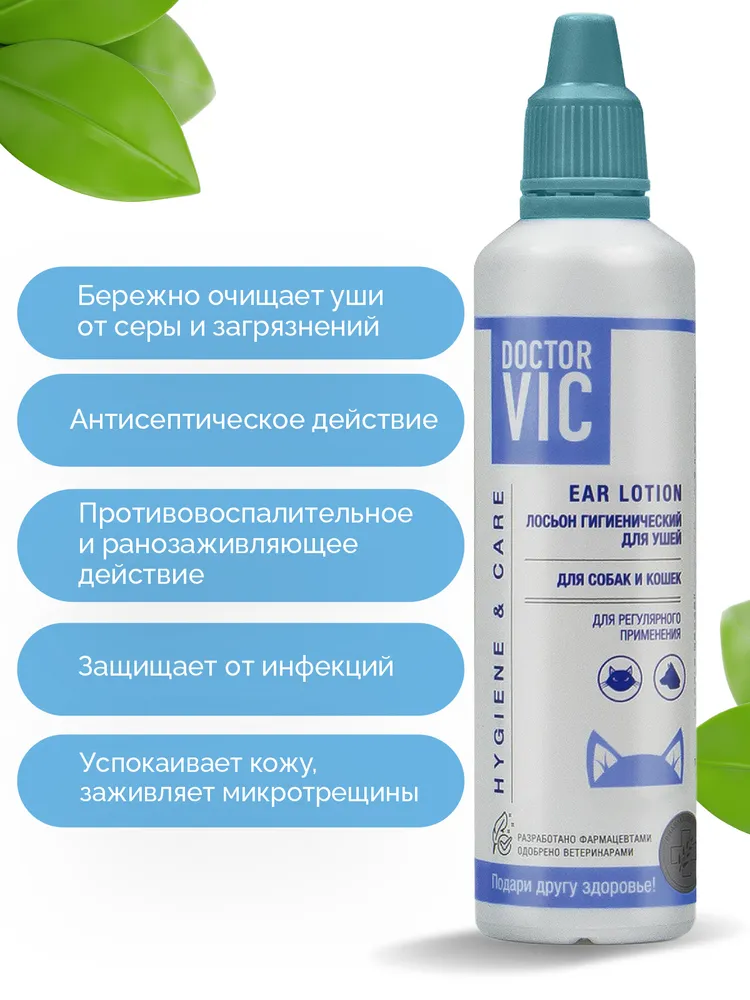 * Уши: Чистить по мере загрязнения ватным диском, смоченным специальным лосьоном для ушей.