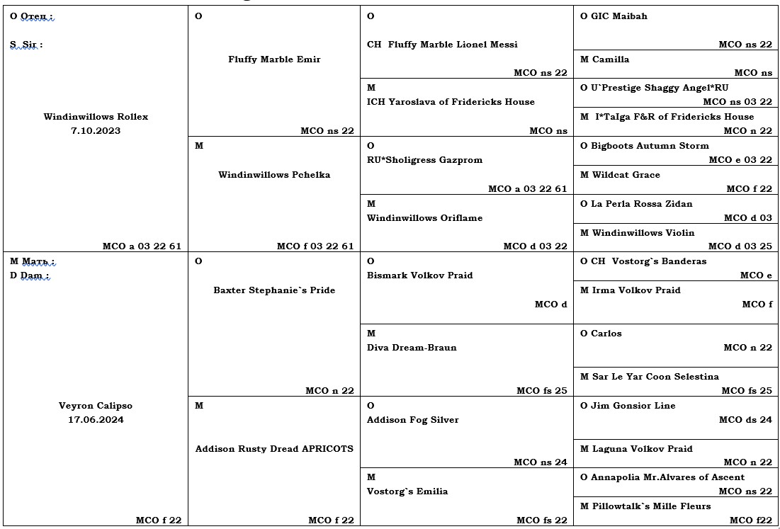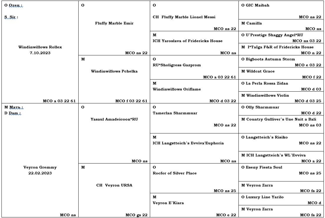 - родословную WCF или TICA;