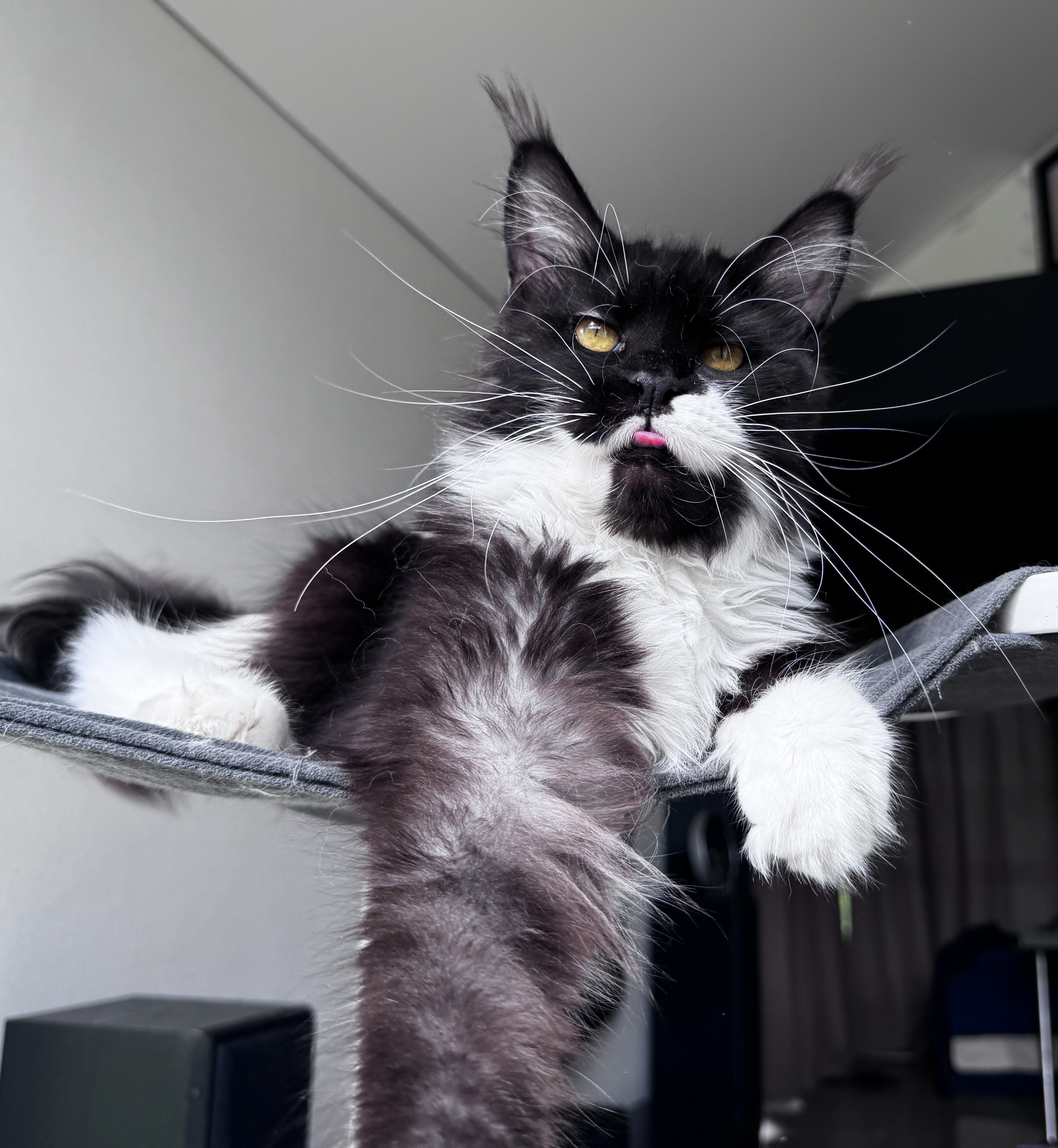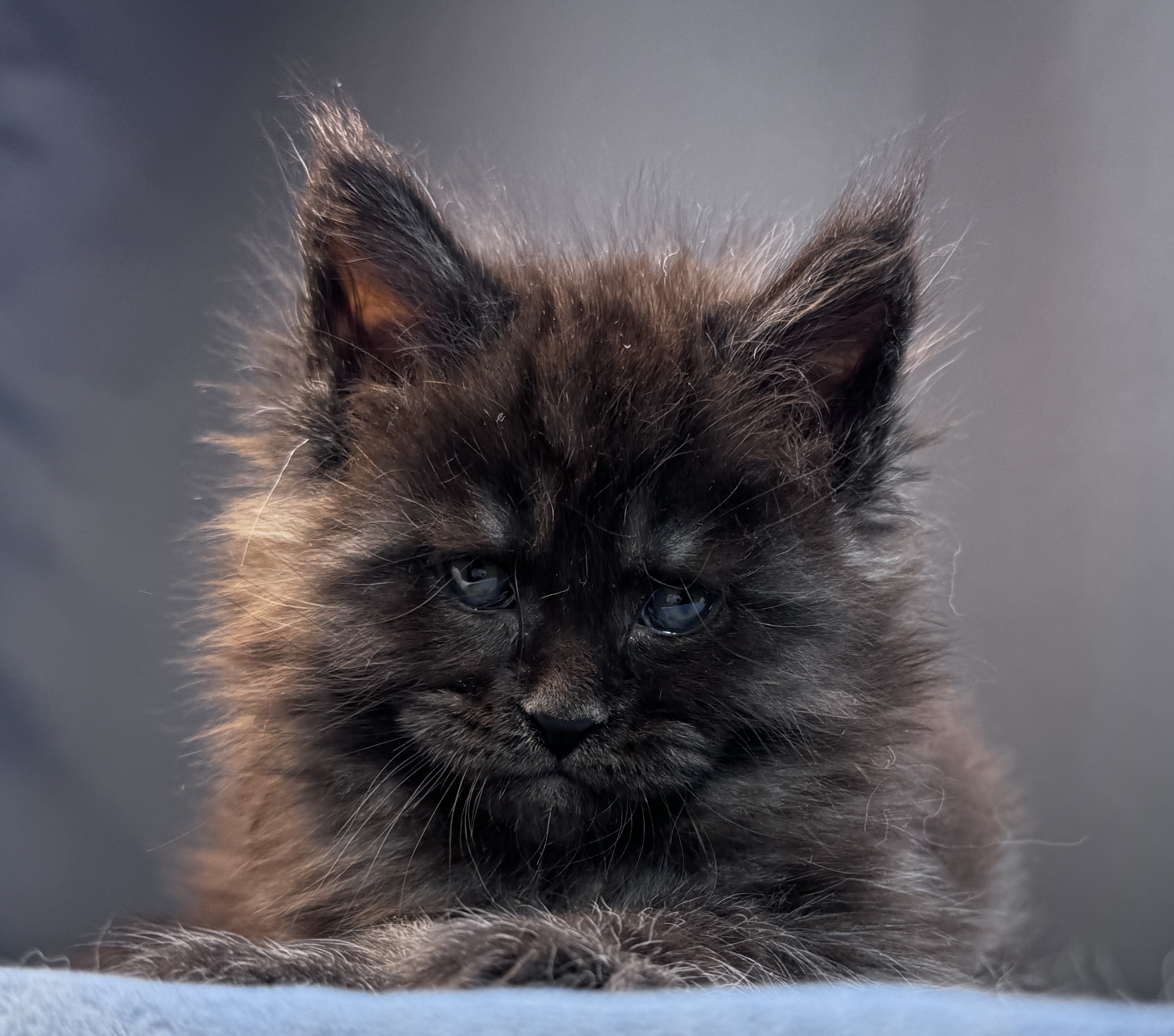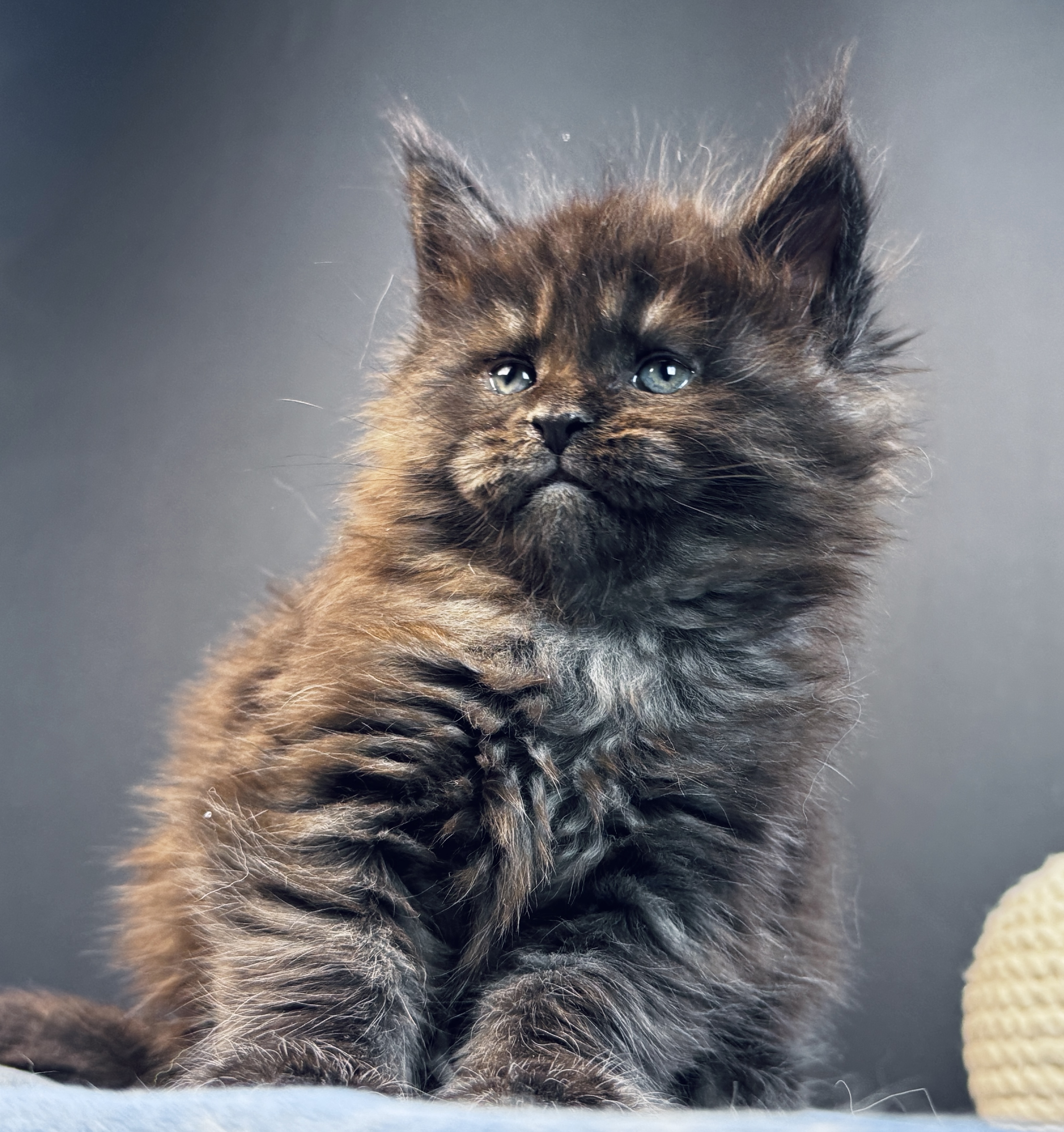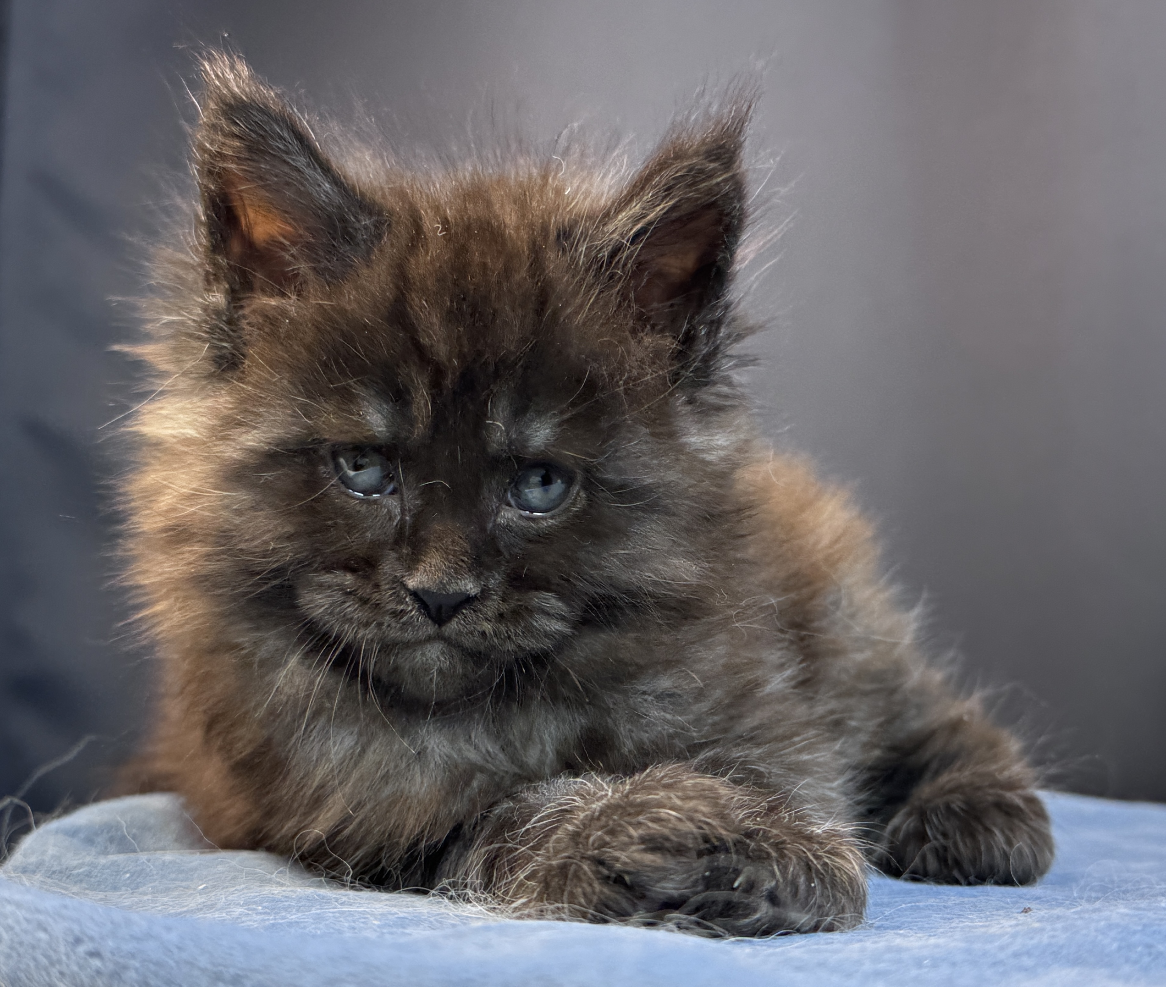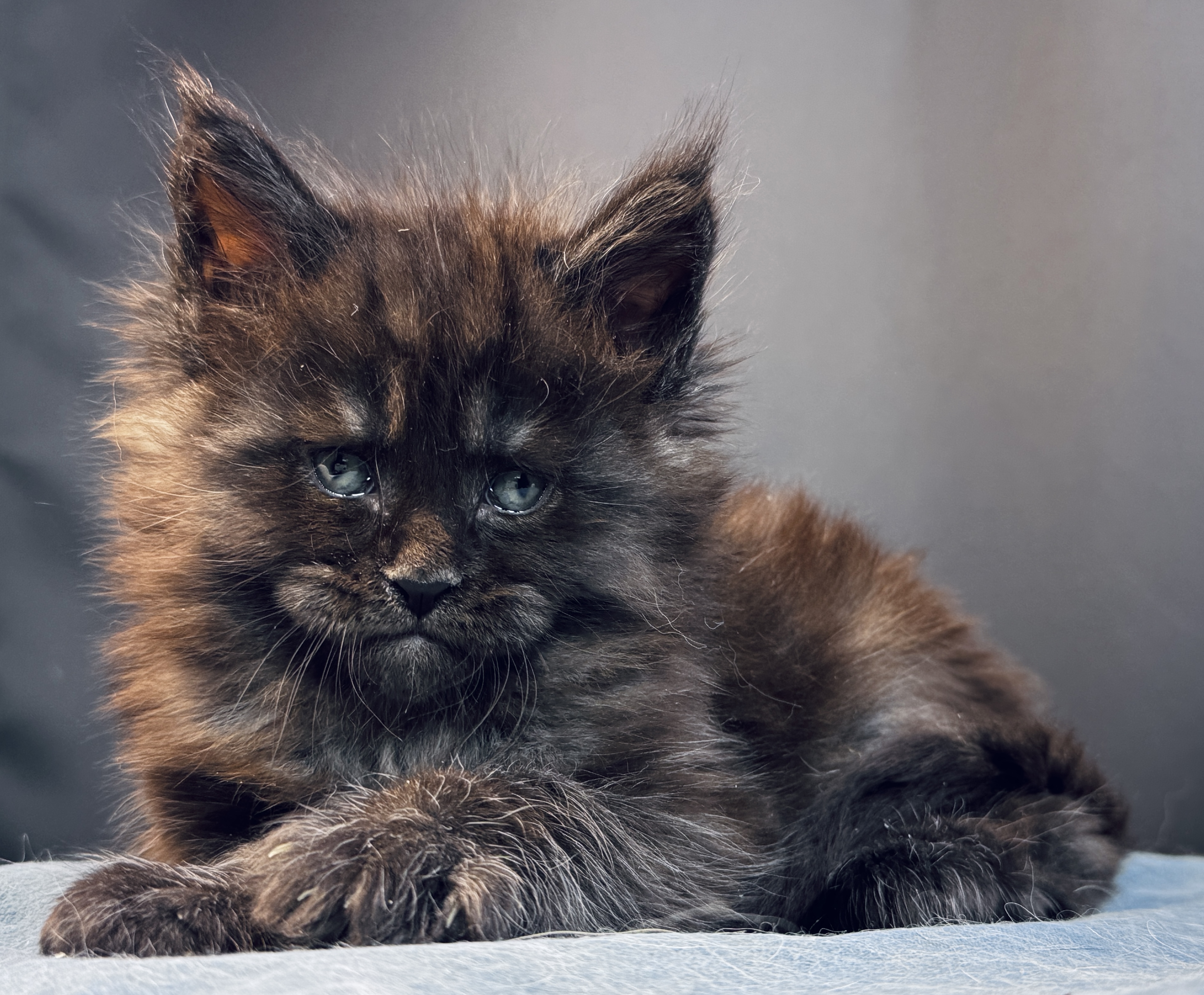 Серьезный и харизматичный парень. Даже в столь малом возрасте он уже имеет "ЛИЦО". Чувство собственного достоинства зашкаливает. Wild Look зашкаливает) Общительный и любознательный котёнок. Он с удовольствием играет с игрушками, любит бегать за мячиком и обожает сидеть на руках. Отлично ладит с другими кошками и детьми.